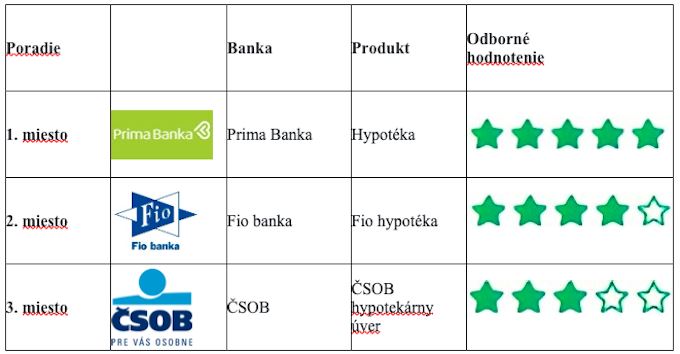 V novom rebríčku hypotekárnych úverov obhájila prvé miesto Prima banka, nasledovaná Fio bankou a ČSOB na treťom mieste.